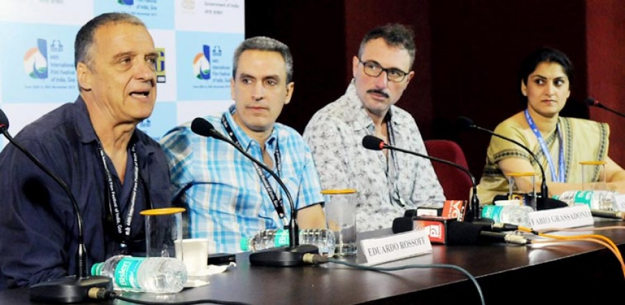 पणजी। गोवा में चल रहे 44वें भारतीय अंतर्राष्ट्रीय फिल्मोत्सव में विश्व सिनेमा खंड में दिखाई जा रही फिल्मों के विदेशी निर्देशकों की आज यहां पत्रकारों से मुलाकात हुई। इस पैनल में मैक्सिकों में निर्माता-निर्देशक एडुआर्डो रोसॉफ और इटली के लेखक-निर्देशक एंटोनियो पियाज्ज़ा एवं फैबियो ग्रैसाडोनिया शामिल हैं।