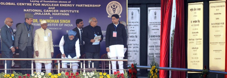 झज्जर-हरियाणा। प्रधानमंत्री मनमोहन सिंह ने झज्जर, हरियाणा में विश्व परमाणु ऊर्जा सहभागिता केंद्र और राष्ट्रीय कैंसर संस्थान की आधार शिला रखने के उपलक्ष्य में आयोजित समारोह में कहा है कि विश्व परमाणु ऊर्जा सहभागिता केंद्र की स्थापना के लिए देश का यह पहला कदम है, इससे हरियाणा को एक ऐसी संस्था मिलने जा रही है, जो महफूज़ और टिकाऊ परमाणु ऊर्जा को बढ़ावा देने की दिशा में काम करेगी, इसके अलावा राष्ट्रीय कैंसर संस्थान की स्थापना के लिए भी काम शुरू कर दिया गया है, यह संस्थान हरियाणा में अखिल भारतीय आयुर्विज्ञान संस्थान के परिसर की स्थापना की एक बड़ी परियोजना का हिस्सा होगा और देश में कैंसर की बीमारी से संबंधित खोज और उसके इलाज की सुविधाओं के लिए एक उत्कृष्टता केंद्र के तौर पर काम करेगा।