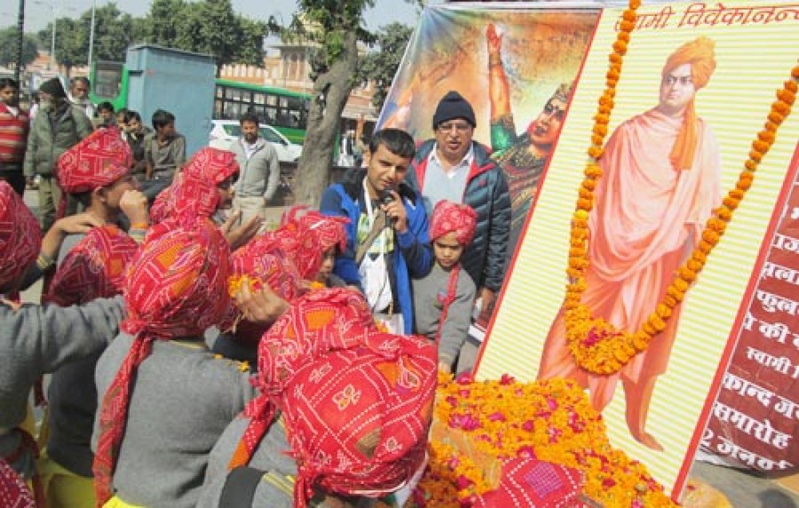 जयपुर। विश्व भर में जब भारत को किसी भी प्रकार सम्मान की दृष्टि से नहीं देखा जाता था, ऐसे में स्वामी विवेकानंद ने अपने को सभ्य और सुसंस्कृत समझने वाले पश्चिम के देशों को अपने तेजस्वी विचारों से जीत कर भारत की सोच, दर्शन एवं सत्य सनातन भारतीय सभ्यता, संस्कृति और आध्यात्म की थाती से परिचित कराया। ऐसे युग पुरूष स्वामी विवेकानंद की सार्धशती वर्ष का वर्ष भर आयोजन संपूर्ण भारत में अनेक कार्यक्रमों के माध्यम से हुआ। ऐसे युवा सन्यासी विवेकानंद के 151 वें जयंती दिवस पर कल शहर में जन-जन तक उनके संदेश को पंहुचाने का स्वामी विवेकानंद सार्धशती समारोह समिति ने प्रयास किया।
