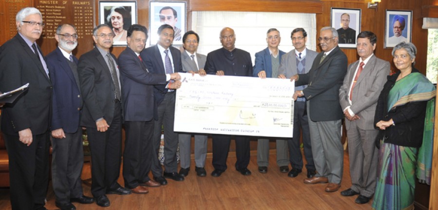 नई दिल्ली। रेल मंत्री मल्लिकार्जुन खड़गे ने आज नई दिल्ली में रेल भवन में रेल मंत्रालय के अधीन सात सार्वजनिक क्षेत्र की प्रतिष्ठानों से वर्ष 2012-13 के लिए 505.31 करोड़ रुपये का लाभांश चेक प्राप्त किया। वर्ष 2011-12 में इन सातों प्रतिष्ठानों ने 405.78 करोड़ रुपये का लाभांश दिया था। इस तरह वैश्विक अर्थव्यवस्था में मंदी के बावजूद रेलवे के सार्वजनिक क्षेत्र के प्रतिष्ठानों का प्रदर्शन अच्छा रहा है और इन प्रतिष्ठानों ने पिछले वर्ष की तुलना में 2012-13 में लगभग 25 प्रतिशत अधिक लाभांश दिये हैं।