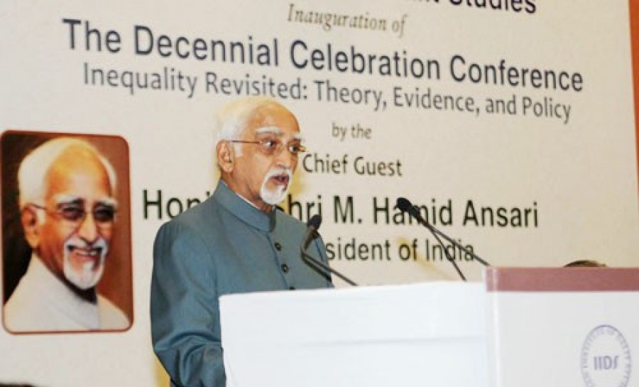 नई दिल्ली में जवाहरलाल नेहरू विश्वविद्यालय में असमानता पर पुनर्विचारः सिद्धांत, प्रमाण और नीति’ पर भारतीय दलित अध्ययन संस्थान (आईआईडीएस) के दशवार्षिक समारोह सम्मेलन के उद्घाटन पर उन्होंने विचार व्यक्त किया कि अपनी सामाजिक पहचान के कारण अनुसूचित जाति, अनुसूचित जनजाति, अल्पसंख्यक और महिलाएं पक्षपात और सामाजिक असमानता झेलने पर विवश हैं, इसका असर संसाधनों तक उनकी पहुंच, अवसरों और कभी-कभी तो उनके नागरिक अधिकारों पर भी पड़ता है। उन्होंने कहा कि भारत की जनसंख्या में तकरीबन आधे लोग अनुसूचित जाति, अनुसूचित जनजाति और अन्य पिछड़ा वर्ग के हैं और अल्पसंख्यक तथा बंजारा एवं गैर-अधिसूचित जनजातियों के व्यक्तियों को मिलाकर ये लोग हमारी जनसख्यां के करीब तीन-चौथाई हैं, इससे पता चलता है कि ये चुनौती कितनी बड़ी है और इसका निवारण कितना महत्वपूर्ण है।