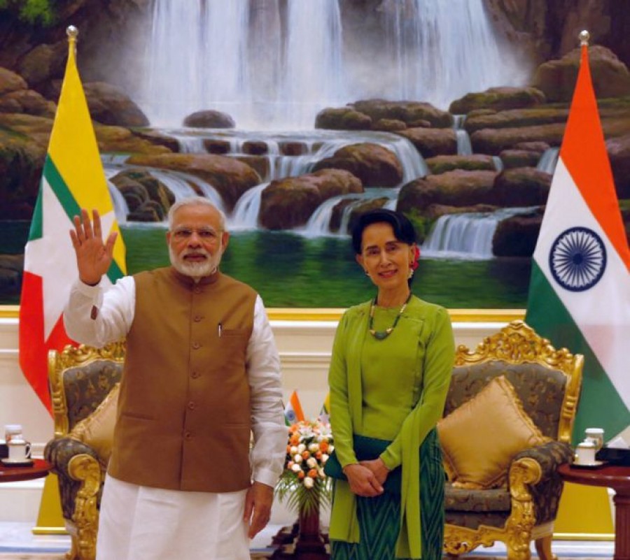 ने पई ताव अंतर्राष्ट्रीय हवाई अड्डे पर म्यांमार के स्वास्थ्य मंत्री थान औंग ने प्रधानमंत्री नरेंद्र मोदी का बड़ी ही गर्मजोशी के साथ स्वागत किया। नरेंद्र मोदी ने ट्वीट किया कि ‘ने पई ताव म्यांमार पहुंचने पर गर्मजोशी से हुए स्वागत के बीच इस खूबसूरत देश में आना शानदार रहा।’ म्यांमार में प्रधानमंत्री ने एशिया के महत्वपूर्ण संयुक्त आर्थिक विकास, आतंकवाद से सुरक्षा और गरीबी दूर करने के एजेंडे पर आसियान को संबोधित किया। अब वे पूर्वी एशिया शिखर बैठकों में शिरकत करेंगे। एसोसिएशन ऑफ साउथईस्ट एशियन नेशंस यानी आसियान भारत की ‘एक्ट ईस्ट’ नीति के मूल में है, इस पर जोर देते हुए कि प्रधानमंत्री नरेंद्र मोदी ने म्यांमार के लिए रवाना होने से पहले कहा था कि वह आसियान नेताओं के साथ इस बारे में बात करने को लेकर आशांवित हैं कि हमारे रिश्तों को नए स्तर तक कैसे ले जाया जाए, जो प्रत्येक सदस्य के साथ हमारे गहराते द्विपक्षीय रिश्तों के लिए पूरक का काम करेगा।