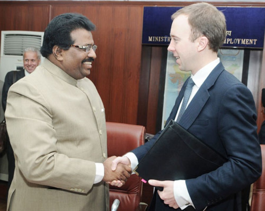 नई दिल्ली। ब्रिटेन के व्यापार, नवरचना, कौशल और शिक्षा उपमंत्री मैथ्यू हैनकॉक और भारत के श्रम और रोजगार राज्य मंत्री के सुरेश के बीच आज श्रम शक्ति भवन में बातचीत हुई। बातचीत में दोनों पक्षों की ओर से संबद्ध मंत्रालयों के वरिष्ठ अधिकारी भी मौजूद थे। ब्रिटेन के मंत्री का स्वागत करते हुए के सुरेश ने कहा कि दोनों देशों के बीच शिक्षा और कौशल के क्षेत्र में मिलकर काम करने की काफी संभावनाएं हैं, जिससे स्थायी दीर्घकालिक व्यापार सहयोग कायम किया जा सकता है।