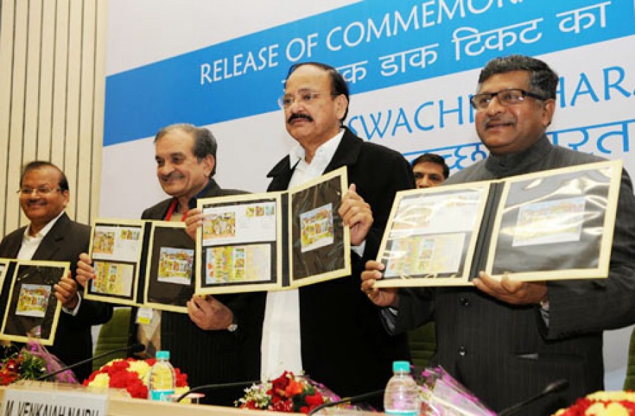 नई दिल्ली। महात्मा गांधी की पुण्यतिथि 'शहीद दिवस' के मौके पर केंद्रीय संचार एवं सूचना प्रौद्योगिकी मंत्री रविशंकर प्रसाद ने केंद्रीय शहरी विकास, आवास एवं शहरी गरीबी उन्मूलन संसदीय कार्य मंत्री एम वेंकैय्या नायडू और केंद्रीय ग्रामीण विकास मंत्री चौधरी बीरेंद्र सिंह के साथ स्वच्छ भारत विषय पर स्मारक डाक टिकट जारी किया। रविशंकर प्रसाद ने इस मौके पर कहा कि प्रधानमंत्री नरेंद्र मोदी के नेतृत्व में सरकार स्वच्छता को इस देश की संस्कृति का हिस्सा बनाना चाहती है।
