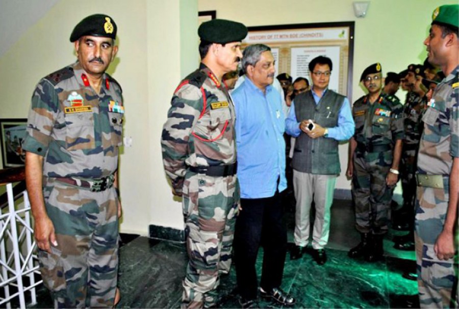 रक्षामंत्री मनोहर पार्रिकर गजराज कोर के मुख्यालय पहुंचे और राज्य में सुरक्षा स्थिति की समीक्षा की। रक्षामंत्री को राज्य में आतंकवाद निरोधी ऑपरेशन की जानकारी दी गई और इस संबंध में स्थिति सामान्य करने के लिए लगातार चलाए जा रहे ऑपरेशन में नागरिक प्रशासन, राज्य पुलिस और अन्य अर्धसैनिक बलों के बीच तालमेल से प्राप्त सफलता की जानकारी दी गई। रक्षामंत्री ने अग्रिम क्षेत्रों का दौरा किया और इन क्षेत्रों में तैनात जवानों से बातचीत कर जमीनी स्थिति का जायजा लिया। मनोहर पार्रिकर इन बर्फीले क्षेत्रों में राष्ट्र के लिए जान न्यौछावर करने वाले अमर शहीदों की स्मृति में बने तवांग युद्ध स्मारक में अपनी श्रद्धांजलि अर्पित की।