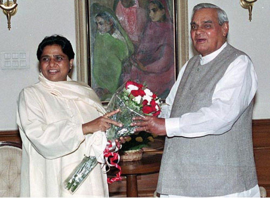 बसपा सुप्रीमो मायावती कांग्रेस गठबंधन से डरी हुई हैं, जिससे स्पष्ट संकेत है कि उनके मन में एनडीए के लिए कुछ न कुछ चल रहा है भले ही अटल बिहारी वाजपेयी राजनीति से संन्यास ले चुके हैं, लेकिन मायावती ने अपनी ओर से राजनीतिक पहल कर उन्हें फिर से सक्रिय राजनीति में लौटाने और ऊर्जावान बनाने का प्रयास किया है। यह ठीक है कि भाजपा के शिखर नेता लाल कृष्ण आडवाणी देश के प्रधानमंत्री के रूप में प्रस्तुत किए जा चुके हैं, लेकिन इसके साथ यह भी उतना ठीक है कि राजनीति में न कुछ स्थाई होता है और न असंभव। ठीक उस तरह जिस तरह से अखिलेश दास गुप्ता के करोड़ों रुपये चुनाव प्रचार में खर्च कराने के बाद मुख्यमंत्री मायावती ने उन्हें अपनी पार्टी से राज्यसभा में भेज दिया। कहां तो अखिलेश दास गुप्ता और उनकी राजनीतिक आका मायावती पूर्व प्रधानमंत्री अटल बिहारी बाजपेयी की अबतक अजेय रही लखनऊ संसदीय सीट पर बसपा का परचम लहराने की बात कर रहे थे और कहां रातों रात अखिलेश दास गुप्ता को राज्यसभा में भेजने के लिए घोषणा कर दी गई। इससे केंद्र की भावी सरकार में अटल बिहारी बाजपेयी में एक बार फिर से प्रधानमंत्री बनाने की मायावी रणनीति और महत्वाकांक्षा जगाने के संकेत मिल रहे हैं। इसलिए मुश्किल नहीं है कि इस सर्वोच्च पद के लिए हर दृष्टि से अनुकूल परिस्थितियों के बन जाने के बाद बाजपेयी उठ खड़े हों। अतीत में जाएं तो पिछले दो दशक से देश के प्रधानमंत्री पद को लेकर केवल चमत्कार ही होते दिखाई दे रहे हैं।
