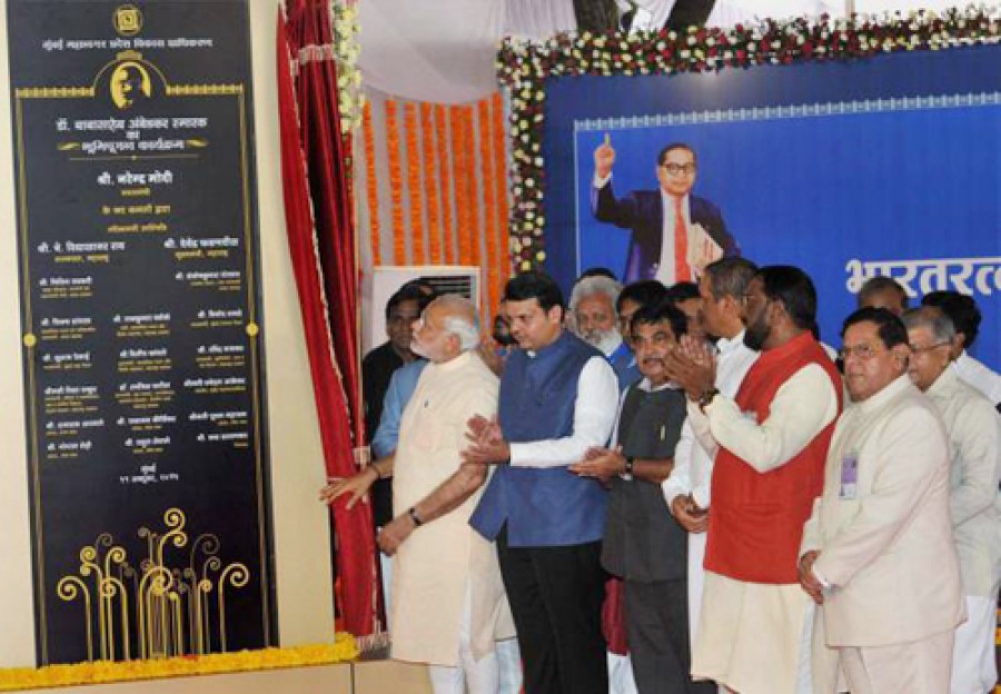 प्रधानमंत्री ने डॉ भीमराव अंबेडकर के राष्ट्र के प्रति योगदान का स्मरण करते हुए कहा कि इंदु मिल परिसर में उनका एक विश्व स्तरीय स्मारक बनाया जाएगा, इस स्मारक में महाराष्ट्र के सभी गांवों की जनभागीदारी होनी चाहिए। उन्होंने भीमराव अंबेडकर के योगदान के प्रति जागरूकता बढ़ाने के लिए हर वर्ष 26 नवंबर को संविधान दिवस मनाने की घोषणा भी की। प्रधानमंत्री ने आरक्षण नीति की किसी भी प्रकार से समीक्षा से संबंधित सभी अफवाहों का कड़े शब्दों में खंडन करते हुए कहा कि डॉ अंबेडकर के दिए आरक्षण लाभ को कोई नहीं छीन सकता। प्रधानमंत्री के इस कथन के बाद राजनीतिक दलों के इस प्रचार की हवा निकल गई कि भाजपा सरकार संघ के बहाने आरक्षण खत्म करने की सोच रही है। अंबेडकर की विरासत को याद करते हुए प्रधानमंत्री नरेंद्र मोदी ने इस प्रचार से इनकार किया कि उनकी सरकार आरक्षण व्यवस्था को रद्द करने वाली है।