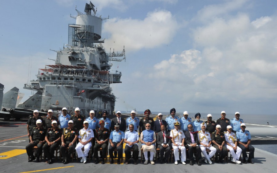 प्रधानमंत्री ने रक्षामंत्री मनोहर पार्रिकर, वायुसेना, थलसेना और नौसेना के प्रमुखों और कमांडरों से कहा कि मुझे इस बात से खुशी है कि हम दिल्ली से बाहर एक सैन्य बेस पर मुलाकात कर रहे हैं। उन्होंने कहा कि कोच्चि हिंद महासागर के शीर्ष पर और हमारी समुद्री इतिहास के चौराहे पर स्थित है, भारत का इतिहास समुद्रों से प्रभावित रहा है और हमारे भविष्य की समृद्धि और सुरक्षा का रास्ता भी इन्हीं महासागरों से होकर गुजरता है। प्रधानमंत्री नेकहा कि विश्व के सौभाग्य की कुंजी भी इन्हीं में छिपी है। उन्होंने कहा कि यह विमान वाहक जहाज हमारी समुद्री शक्ति का साधन और हमारी समुद्री जिम्मेदारी का प्रतीक है। उन्होंने कहा कि भारतीय सशस्त्र सेनाएं हमेशा से न केवल अपनी शक्ति के लिए जानी जाती हैं, बल्कि वे अपनी परिपक्वता और जिम्मेदारी से जानी जाती है, जिसका वे निर्वहन करती हैं, वे हमारे समुद्रों और सीमाओं की रक्षा करती हैं और हमारे राष्ट्र और हमारे नागरिकों को सुरक्षित रखती हैं।