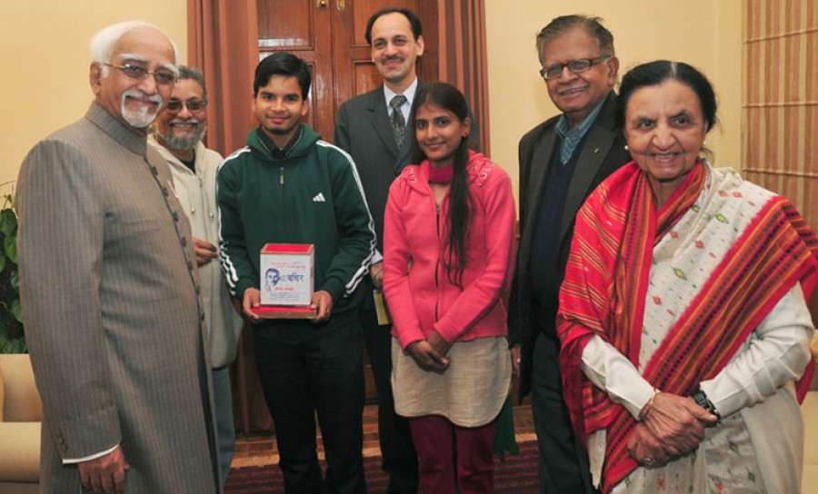 नई दिल्ली। अखिल भारतीय बधिर संघ (एआईएफडी) के एक प्रतिनिधिमंडल ने आज उपराष्ट्रपति मोहम्मद हामिद अंसारी से मुलाकात की। प्रतिनिधिमंडल के सदस्यों ने 55वें बधिर झंडा सप्ताह के मौके पर उपराष्ट्रपति को झंडा लगाया। उपराष्ट्रपति ने प्रतिनिधिमंडल के सदस्यों के साथ बातचीत की और देशभर में बधिर समुदाय के कल्याण के लिए कोशिश कर रहे युवा छात्रों और संघ को उनकी कोशिशों में सफल होने का आशीर्वाद भी दिया।