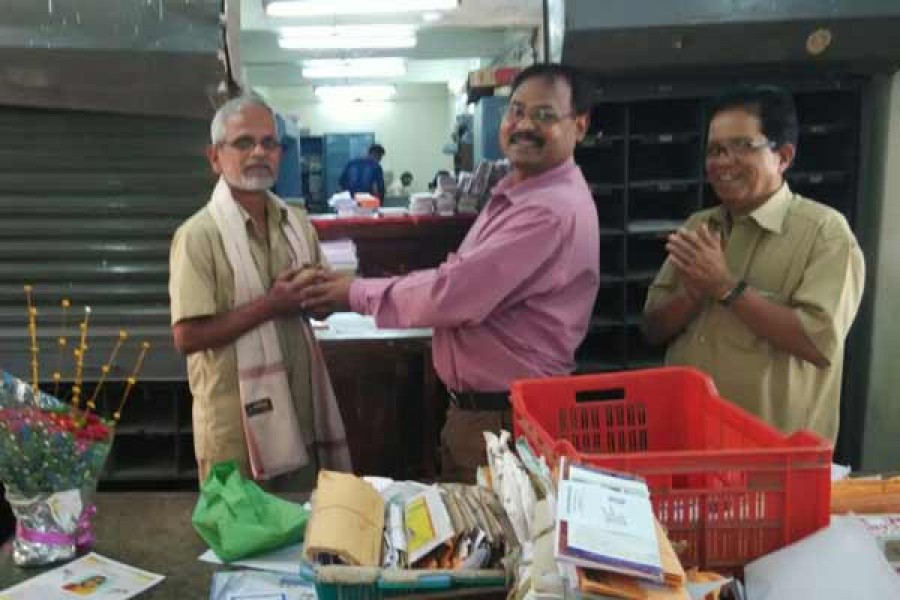मुंबई। मालाड (वेस्ट) में जकरिया रोड पर मालाड डिलीवरी पोस्ट ऑफिस में पोस्टमॉस्टर प्रभुनारायण भारद्वाज ने पोस्टमैन अजित ए सावंत को 'बेस्ट परफॉरमेंस ऑफ दी मंथ फरवरी 2016' के लिए सम्मानित किया। पोस्टमॉस्टर प्रभुनारायण भारद्वाज ने बताया कि पोस्टल डिपार्टमेंट ने पोस्टमैनों को सम्मानित करने का काम शुरू किया है। उन्होंने कहा कि जिस पोस्टमैन की सबसे ज्यादा हाज़िरी और लोगों से अच्छा व्यवहार होगा, उसको हर महीने सम्मानित किया जाएगा, जिसमें उसको यह सम्मान दिया जाएगा और यही नहीं उसका ऑफिस के बोर्ड पर फोटो भी लगाया जाएगा। इससे पोस्टमैनों का मनोबल बढ़ेगा और वे अच्छे से काम करेंगे। पोस्टमैन अजित ए सावंत पिछले 30 वर्ष से भारतीय डाक में काम कर रहे हैं। सम्मान ग्रहण करने पर पोस्टमैन अजित ए सावंत ने कहा कि यह पोस्टल डिपार्टमेंट का एक सराहनीय कदम है। उन्होंने इस सम्मान के लिए सभी का धन्यवाद किया।