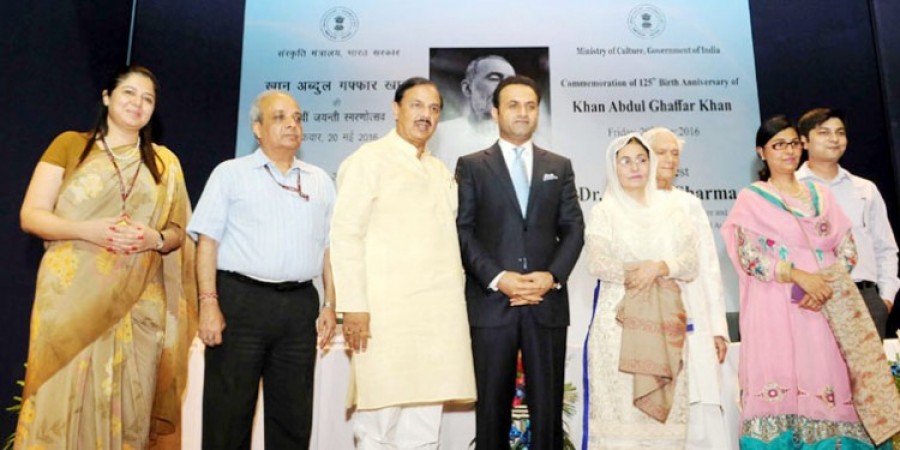 नई दिल्ली। केंद्रीय संस्कृति, पर्यटन मंत्रालय में स्वतंत्र प्रभार राज्यमंत्री डॉ महेश शर्मा ने खान अब्दुल गफ्फार खान की 125वीं जयंती पर संस्कृति मंत्रालय की 'सीमांत गांधी और भारतीय स्वतंत्रता आंदोलन' नामक प्रदर्शनी का उद्घाटन किया। उन्होंने खान अब्दुल गफ्फार खान के वंशजों यानि उनकी प्रपौतियों यास्मिन खान, तनजीम खान और प्रपौत्र दानिश खान को इस अवसर पर शॉल भेंट करके सम्मानित किया। संस्कृति मंत्रालय 2015-16 में खान अब्दुल गफ्फार खान की 125वीं जयंती मना रहा है। स्मरणोत्सव के अधीन गतिविधियों के एक हिस्से के रूप में नेहरू स्मारक संग्रहालय और पुस्तकालय नई दिल्ली ने इस प्रदर्शनी और कार्यक्रम का आयोजन किया है।