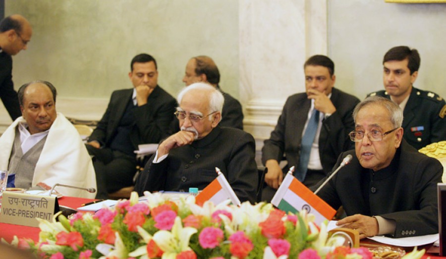 राष्ट्रपति ने कहा कि देश की आंतरिक सुरक्षा में 2012 में सुधार हुआ, लेकिन उन्होंने जोर देकर कहा कि हमें देश की एकता और अखंडता को कमजोर करने वाली राष्ट्र विरोधी ताकतों की किसी भी साजिश को विफल करने के अपने प्रयासों में अटल रहना होगा, आतंकवाद से निपटने की हमारी प्रतिबद्धता मजबूत रहनी चाहिए। उन्होंने सीमावर्ती राज्यों को सलाह दी कि वे अतिरिक्त सतर्कता बरतें। सीमावर्ती इलाकों में बुनियादी सुविधाओं के विकास से संबंधित विभिन्न कार्यक्रमों में तेजी लाने की जरूरत है, ताकि बढ़ती चुनौतियों से मुकाबला किया जा सके। राष्ट्रपति ने कहा कि सरकार के कार्यक्रमों को लोगों तक पहुंचाने की व्यवस्था को तत्काल मजबूत बनाने की जरूरत है।