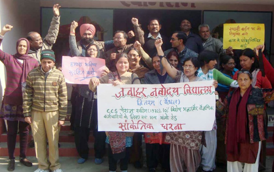 कैथल। जवाहर नवोदय विद्यालय तितरम के कर्मचारियों की हड़ताल के समर्थन में सोमवार को पुन: धरना देकर रोष प्रकट किया गया। रोषस्वरूप कर्मचारियों ने विद्यालय की छुट्टी कर दी और सभी छात्र-छात्राओं को अपने घर भेज दिया। नवोदय विद्यालय के यूनिट अध्यक्ष मदनपाल ने बताया कि उनका यह धरना अब विद्यालय में अनिश्चितकाल के लिए जारी रहेगा।