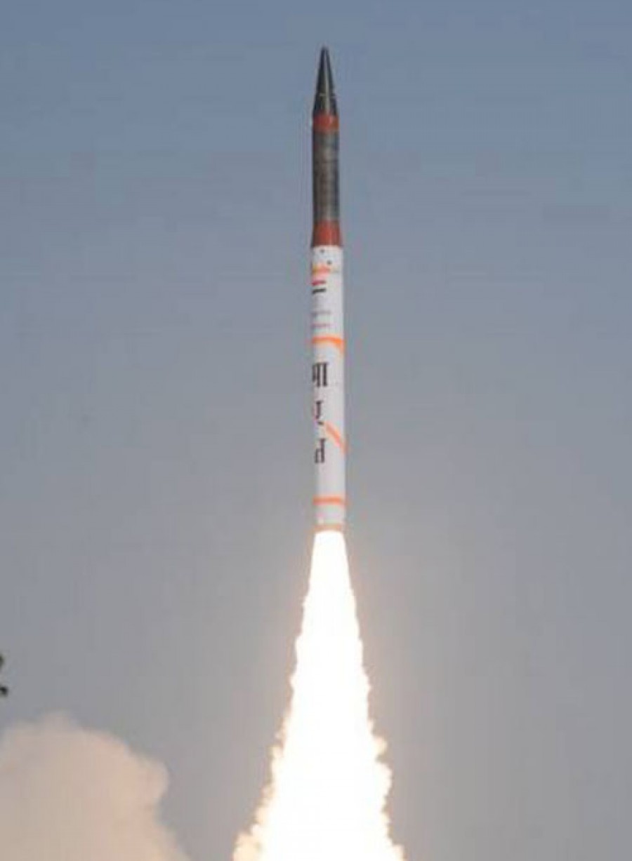 भुवनेश्वर। लंबी दूरी की सतह से सतह तक मार करने वाली बैलिस्टिक मिसाइल अग्नि-5 का डीआरडीओ ओडिशा के डॉ अब्दुल कलाम द्वीप से सफल परीक्षण किया गया। अग्नि-5 मिसाइल की परीक्षण क्षमता ने देश की स्वदेशी मिसाइल क्षमताओं की प्रतिरोधक क्षमता का स्तर बढ़ा दिया है। सभी रडार, ट्रैकिंग सिस्टम और रेंज स्टेशनों ने इसकी उड़ान प्रदर्शन पर नज़र रखते हुए मिशन के सभी उद्देश्यों को सफलतापूर्वक हासिल किया। यह अग्नि-5 मिसाइल का चौथा परीक्षण था और रोड मोबाइल लांचर पर एक कैनिस्टर से यह दूसरा परीक्षण था, सभी चार मिशन सफल रहे हैं।