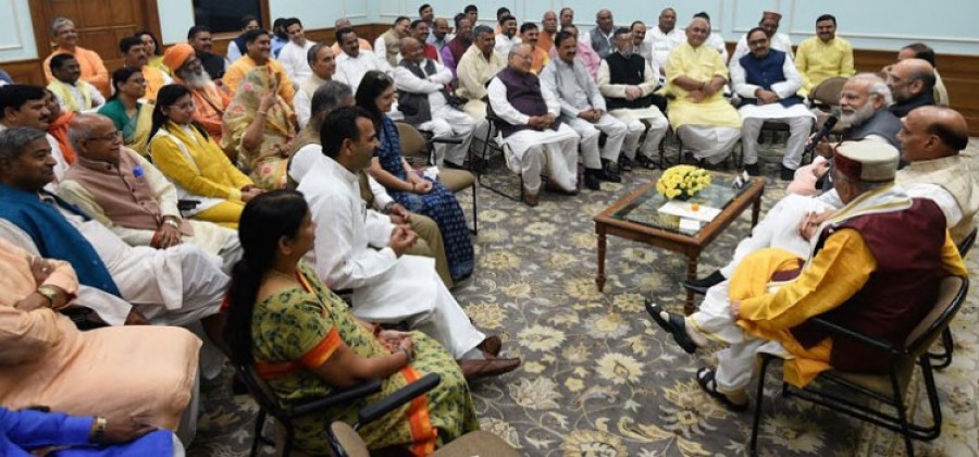 नई दिल्ली। प्रधानमंत्री नरेंद्र मोदी और भारतीय जनता पार्टी के राष्ट्रीय अध्यक्ष अमितभाई शाह के साथ उत्तर प्रदेश के बीजेपी सांसदों की प्रथम बैठक हुई, जिसमें गृहमंत्री राजनाथ सिंह, भाजपा के वरिष्ठ सांसद मुरली मनोहर जोशी और संसदीय कार्यमंत्री अनंत कुमार उपस्थित थे। सांसदों ने नरेंद्र मोदी और अमितभाई शाह का गर्मजोशी से अभिवादन किया। भाजपा के राष्ट्रीय अध्यक्ष ने उत्तर प्रदेश में ऐतिहासिक जीत के लिए नरेंद्र मोदी के नेतृत्व में अथक परिश्रम करने के लिए सभी सांसदों को धन्यवाद दिया। प्रधानमंत्री ने अपने उद्बोधन में भाजपा के सांसदों के दायित्व की सक्रियता को गतिमान बनाने के लिए प्रेरणाएं दीं और कहा कि 15 साल के लंबे समय के बाद उत्तर प्रदेश में भाजपा की सरकार, जन सेवा और विकास के लिए पूरी शक्ति के साथ कार्यरत हो गई है। उन्होंने यूपी में भाजपा सरकार की सफलता और वहां सुशासन का निर्माण करने के लिए और उत्तर प्रदेश को बीमारू स्थिति से निकालकर सुचारु उत्तर प्रदेश बनाने के लिए जन अपेक्षा की पूर्ति और भ्रष्टाचारमुक्त शासन प्रस्थापित करने के लिए नई सरकार को पूरा सहयोग देने का आग्रह किया।