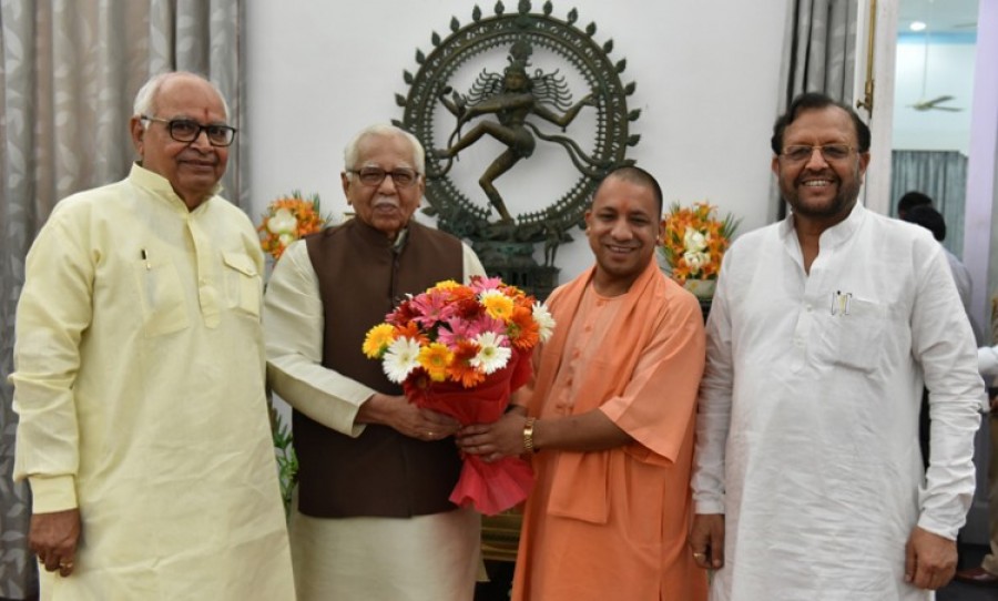 लखनऊ। राज्यपाल राम नाईक से आज प्रदेश के मुख्यमंत्री योगी आदित्यनाथ, विधानसभा अध्यक्ष हृदय नारायण दीक्षित एवं संसदीय कार्य मंत्री सुरेश खन्ना ने राजभवन में भेंट की। राज्यपाल से भेंट के दौरान मुख्यमंत्री योगी आदित्यनाथ ने उनसे विधान मंडल के समवेत सत्र बुलाए जाने की तिथि पर चर्चा की। परम्परा के अनुसार वर्ष की पहली सदन की बैठक में राज्यपाल संयुक्त सदन के सदस्यों को सम्बोधित करते हैं। राज्यपाल के अभिभाषण के बाद दोनों सदनों में इस पर चर्चा होती है, जिसके उपरांत धन्यवाद प्रस्ताव पारित किया जाता है। इस सत्र में जीएसटी विधेयक भी पारित कराने का प्रस्ताव है।