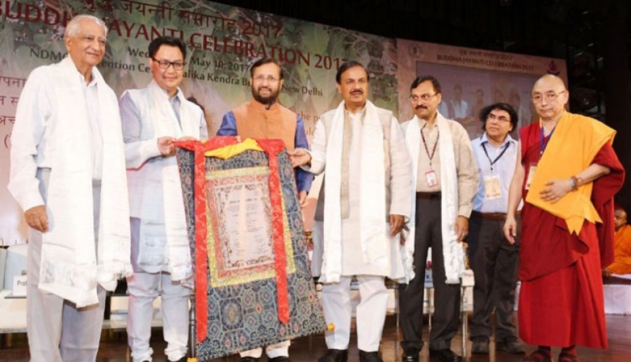मानव संसाधन विकास मंत्री प्रकाश जावड़ेकर ने इस अवसर पर कहा कि भगवान बुद्ध की शिक्षाएं दुनियाभर में लोकप्रिय हैं और मानव संसाधन विकास मंत्रालय भगवान बुद्ध की शिक्षाओं को पाठ्यपुस्तकों में शामिल करने के लिए काम कर रहा है, क्योंकि उनकी शिक्षाएं बहुत प्रासंगिक हैं। उन्होंने कहा कि शिक्षा देने का उद्देश्य न केवल ज्ञान पाने और रोज़गार हेतु कुशल बनाने तक ही सीमित होना चाहिए, बल्कि एक आदर्श व्यक्ति को भी तैयार करने पर ध्यान देना चाहिए, बुद्ध की शिक्षाएं एक आदर्श व्यक्ति के निर्माण में बहुउपयोगी हैं। उन्होंने एनसीईआरटी के पाठ्यक्रम ढांचे को सुधारने पर भी जोर दिया। संस्कृति एवं पर्यटन राज्यमंत्री डॉ महेश शर्मा ने कहा कि बौद्धधर्म ने भारत के सामाजिक और सांस्कृतिक जीवन पर बहुत बड़ा प्रभाव डाला है और भगवान बुद्ध से संबंधित चीजें भारत में ही संपन्न हुई हैं। उन्होंने कहा कि त्रिपिताका के रूप में जाने जानेवाली उनकी तीन टोकरी में नैतिक अनुशासन, मन के प्रशिक्षण की विधि, ज्ञान के फैलाव तथा प्रसार के लिए जमीन तैयार करने के तरीके शामिल हैं।