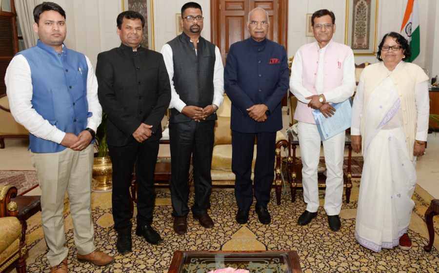 नई दिल्ली/ लखनऊ। राष्ट्रपति रामनाथ कोविद ने उत्तर प्रदेश के सरकारी कार्यालयों, संस्थानों और विद्यालयों में डॉ भीमराव रामजी आंबेडकर का फोटो लगाने के योगी आदित्यनाथ सरकार के निर्णय को एक अच्छा कदम बताया और उसकी सराहना की है। इसी सोमवार को डॉ आंबेडकर महासभा का एक प्रतिनिधिमंडल राष्ट्रीय अध्यक्ष डॉ लालजी प्रसाद निर्मल के नेतृत्व में राष्ट्रपति से मिला था तथा उसने उत्तर प्रदेश के सरकारी कार्यालयों में बाबासाहेब डॉ भीमराव रामजी आम्बेडकर का फोटो लगाए जाने के उत्तर प्रदेश सरकार के निर्णय से राष्ट्रपति को अवगत कराया था। प्रतिनिधिमंडल ने एक ज्ञापन के माध्यम से राष्ट्रपति से अनुरोध किया है कि डॉ आम्बेडकर का चित्र देश के सभी सरकारी संस्थानों में लगाया जाए जिसपर राष्ट्रपति ने कहा कि यह एक अच्छा सुझाव है और इसे पूरे देश में लागू कराए जाने हेतु इसका परीक्षण कराएंगे।