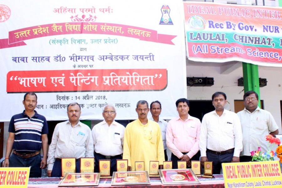 लखनऊ। उत्तर प्रदेश जैन विद्या शोध संस्थान की ओर से बाबासाहेब डॉ भीमराव रामजी आम्बेडकर की 127वीं जयंती पर आइडियल पब्लिक इंटर कॉलेज चिनहट में कई कार्यक्रमों के आयोजन हुए, जिनका उद्घाटन प्रोफेसर डॉ अभय कुमार जैन एवं निदेशक अजय कुमार अग्रवाल ने दीप प्रज्वलन कर किया। प्रोफेसर डॉ अभय कुमार जैन ने कार्यक्रम को संबोधित करते हुए कहा कि बाबासाहेब डॉ भीमराव रामजी आम्बेडकर ने निर्बल वर्ग एवं कमजोर समाज के लिए जीवनपर्यंत कार्य किया। उन्होंने कहा कि हम सभी को बाबासाहेब के निर्धारित समतामूलक समाज का पुनरावलोकन करना होगा, क्योंकि यह देश के उत्थान के लिए आवश्यक है।