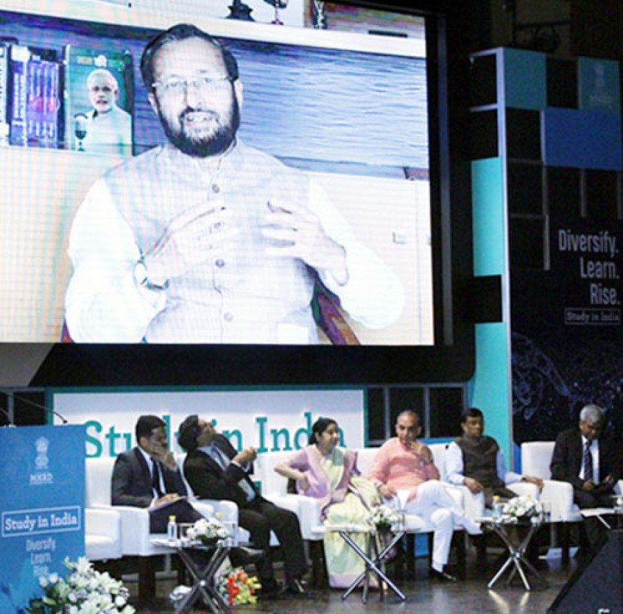 प्रकाश जावड़ेकर ने कहा कि भारत विश्व शिक्षा का केंद्र रहा है, यहां नालंदा और तक्षशीला की समृद्ध विरासत है और अब भारत एक बार फिर 4,000 कॉलेजों और 800 से अधिक विश्वविद्यालयों के साथ शिक्षा क्षेत्र में आगे बढ़ रहा है। उन्होंने कहा कि शीर्ष कॉलेजों को ग्रेडेड स्वायत्ता प्रदान की गई है, जिससे संस्थानों को स्वयं विस्तार करने में मदद मिलेगी, वे अपने पाठ्यक्रमों में सुधार कर सकते हैं और आवश्यकता के अनुसार नए कार्यक्रम लांच कर सकते हैं। मानव संसाधन विकास मंत्री ने कहा कि शीर्ष कॉलेज विदेशी फैकल्टी और विदेशी विद्यार्थियों को ले सकते हैं। उन्होंने कहा कि शिक्षा क्षेत्र में हाल के सुधारों के कारण भारत अब किफायती और गुणवत्ता सम्पन्न शिक्षा का प्रमुख केंद्र बन गया है। मानव संसाधन विकास राज्यमंत्री डॉ सत्यपाल सिंह ने कहा कि भारत तक्षशीला और नालंदा जैसे शिक्षण संस्थानों के समृद्ध इतिहास के साथ वसुधैव कुटुंबकम के सिद्धांत में विश्वास करता है। उन्होंने कहा कि ई-संसद तथा नेशनल एकेडमिक डिपोजिट्री के एकीकरण से भारत में शिक्षा प्रणाली और अधिक पारदर्शी हो गई है। ‘स्टडी इन इंडिया’ पोर्टल लांच करने के लिए विदेश मंत्री सुषमा स्वराज के प्रति आभार व्यक्त करते हुए डॉ सत्यपाल सिंह ने कहा कि पहलीबार इस कार्यक्रम के अंतर्गत जाने-माने शिक्षण संस्थानों के दरवाजे खोले गए हैं, इससे न केवल विदेशी विद्यार्थियों को लाभ होगा, बल्कि भारत भी लाभांवित होगा।