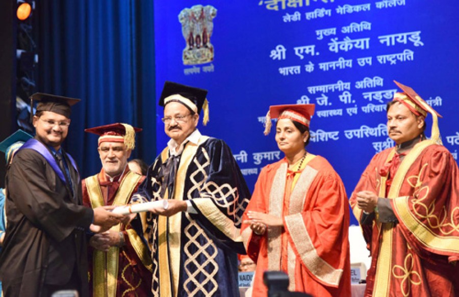 वेंकैया नायडू ने कहा कि मुझे पूरा विश्वास है कि लेडी हार्डिंग मेडिकल कॉलेज के सभी छात्र इस प्रतिष्ठित संस्थान की परंपरा को आगे लेकर जाएंगे और एक स्वस्थ भारत के निर्माण में योगदान करेंगे। उपराष्ट्रपति ने कहा कि प्राचीन भारतीय पंरपरा के अनुसार डॉक्टरों का नाम पूरी श्रद्धा के साथ लिया जाता है, उन्हें वैद्यो नारायणो हरिथि कहा गया है। उन्होंने डॉक्टरों से कहा कि आप जिस महान पेशे से जुड़े हैं, उसमें रोगों को समझने उसके निदान और उसके उपचार के सामर्थ्य वाला दिव्य स्पर्श शामिल है। उपराष्ट्रपति ने मेडिकल कॉलेजों के शिक्षकों से कहा कि विज्ञान और चिकित्सा के इस्तेमाल में युवा पेशेवरों को प्रशिक्षण देना पुण्य का कार्य है, आप न केवल छात्रों को ज्ञान दे रहे हैं और उन्हें कौशल को आत्मसात करने में मदद कर रहे हैं, बल्कि मूल्यों के समावेशन को भी बढ़ावा दे रहे हैं। वेंकैया नायडू ने कहा कि संयम, समझ, सहानुभूति और उपशामक भाव तथा कुशल आकलन चिकित्सा में सफल करियर के लिए महत्वपूर्ण है।