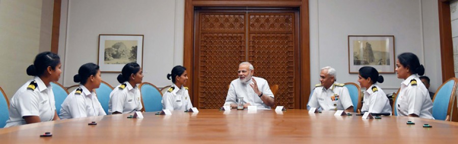 नौकायन पोत की महिला अधिकारियों से मिले मोदी