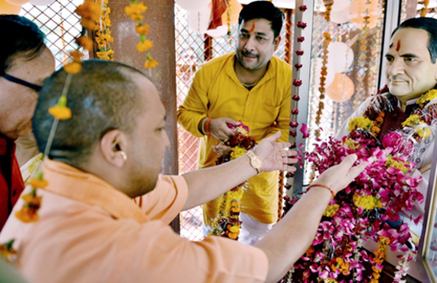 कन्नौज। उत्तर प्रदेश के मुख्यमंत्री योगी आदित्यनाथ ने कन्नौज में राजनेता रामप्रकाश त्रिपाठी की 10वीं पुण्यतिथि पर आयोजित कार्यक्रम में भाग लिया। उन्होंने रामप्रकाश त्रिपाठी की प्रतिमा पर माल्यार्पण किया और भगवान गौतम बुद्ध की मूर्ति का, अनावरण किया और मेधावी विद्यार्थियों को सम्मानित भी किया। योगी आदित्यनाथ ने इस अवसर पर एक कार्यक्रम में राम प्रकाश त्रिपाठी के सामाजिक एवं राजनीतिक योगदान का उल्लेख करने के साथ ही उनकी पुत्री और उत्तर प्रदेश की खनन, मद्यनिषेध एवं आबकारी राज्यमंत्री अर्चना पाण्डेय की भी प्रशंसा करते हुए कहा कि एक पुत्री ने जिस कर्मठता और मजबूती के साथ अपने पिता राम प्रकाश त्रिपाठी की विरासत को नई ऊंचाइयों तक पहुंचाया है, उससे सभी को प्रेरणा लेनी चाहिए। कार्यक्रम को भाजपा के प्रदेश अध्यक्ष महेंद्रनाथ पांडेय ने भी संबोधित किया।