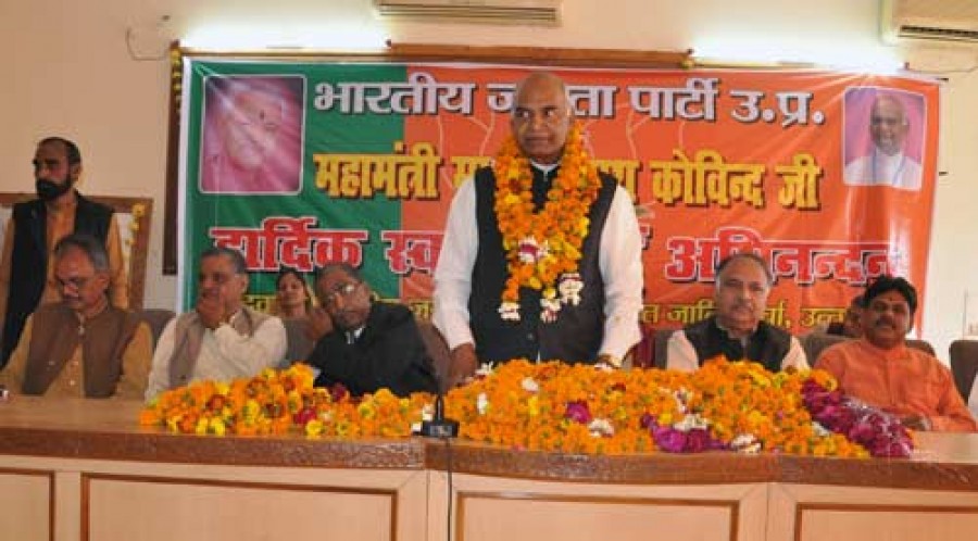 लखनऊ। भारतीय जनता पार्टी अनुसूचित मोर्चा के कार्यकर्ताओं ने प्रदेश महामंत्री रामनाथ कोविद का मंगलवार को पार्टी कार्यालय में भव्य स्वागत किया। कोविद का स्वागत करते हुए अनुसूचित मोर्चे के राष्ट्रीय महामंत्री दिवाकर सेठ ने कहा कि एक कुशल संगठनकर्ता के रूप में रामनाथ कोविद ने पार्टी को मजबूत करने का काम किया है। कोविद के प्रदेश महामंत्री बनने से उत्तर प्रदेश में पार्टी और अधिक मजबूती के साथ लोकसभा चुनावों में उतरेगी विशेषकर अनुसूचित वर्ग के लोगों में पार्टी का जनाधार बढ़ाने में उनकी महत्वपूर्ण भूमिका होगी। इस अवसर पर प्रदेश उपाध्यक्ष आशुतोष टंडन (गोपाल जी), राजकिशोर वर्मा, सरदार सिंह सुधा, जितेंद्र सोनकर, महेश दीवान दुर्गेश बाल्मीकि, गंगाराम भारती इत्यादि कार्यकर्ता उपस्थित थे।