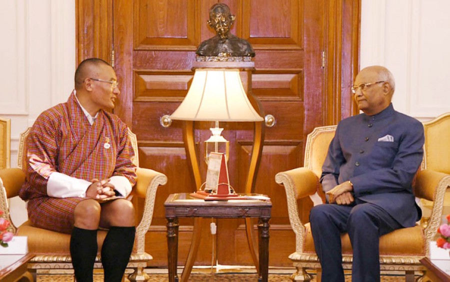 नई दिल्ली। भूटान के प्रधानमंत्री शेरिंग तोबगे ने राष्ट्रपति भवन नई दिल्ली में राष्ट्रपति रामनाथ कोविंद से भेंट की। इस अवसर पर भूटान के प्रधानमंत्री का भारत में स्वागत करते हुए राष्ट्रपति ने कहा कि भारत और भूटान एक आदर्श द्विपक्षीय भागीदारी साझा करते हैं और दोनों देशों के संबंध अनूठे और विशिष्ट हैं। उन्होंने कहा कि हमारे ऐतिहासिक और सांस्कृतिक संबंध हमें प्राकृतिक मित्र बनाते हैं। गौरतलब है कि भूटान भारत का एक ऐसा मित्र देश है, जो भारत के लिए सामरिक दृष्टि से अत्यंत महत्वपूर्ण और भरोसेमंद माना जाता है।