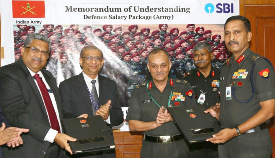नई दिल्ली। भारतीय सेना और भारतीय स्टेट बैंक के बीच रक्षा वेतन पैकेज पर एक समझौता हुआ। दिल्ली में आज समझौता हस्ताक्षर समारोह में एमपी एंड पीएस के महानिदेशक लेफ्टिनेंट जनरल एसके सैनी और कॉरपोरेट सेंटर स्टेट बैंक भवन मुंबई के सीजीएम रंजन कुमार मिश्रा की उपस्थिति में एसबीआई और सेना के शीर्ष अधिकारियों ने समझौता ज्ञापन पर हस्ताक्षर किए। एसबीआई और भारतीय सेना के बीच पहले समझौता ज्ञापन पर 2011 में हस्ताक्षर किए गए थे और इसका नवीकरण 23 फरवरी 2015 को किया गया था।