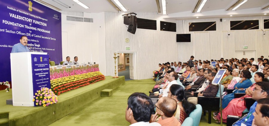 नई दिल्ली। प्रधानमंत्री कार्यालय, कार्मिक, लोकशिकायत, पेंशन, परमाणु ऊर्जा और अंतरिक्ष विभाग में राज्‍यमंत्री डॉ जितेंद्र सिंह ने कहा है कि सहायक अनुभाग अधिकारी भारत सरकार की संरचना के बहुत महत्वपूर्ण घटक हैं। राज्‍यमंत्री डॉ जितेंद्र सिंह ने केंद्रीय सचिवालय सेवा के सहायक अनुभाग अधिकारियों के संस्थापना प्रशिक्षण पाठ्यक्रम के समापन समारोह को संबोधित करते हुए यह बात कही। इस प्रशिक्षण कार्यक्रम का आयोजन कार्मिक, लोक शिकायत व पेंशन मंत्रालय के कार्मिक एवं प्रशिक्षण विभाग तथा सचिवालय प्रशिक्षण और प्रबंधन संस्थान ने किया था।