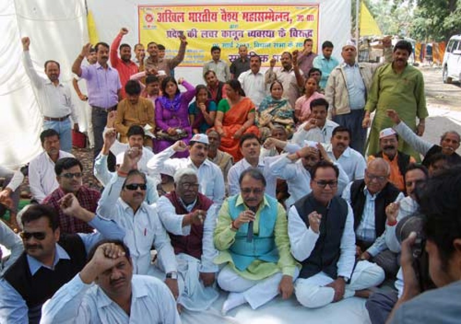 लखनऊ। उत्तर प्रदेश में हत्या-लूट जैसी संगीन वारदातों और लचर कानून व्यवस्था के विरुद्ध अखिल भारतीय वैश्य महासम्मेलन ने विधानसभा के सामने सांकेतिक धरना दिया। धरना संगठन के प्रदेश अध्यक्ष डॉ नीरज बोरा एवं बरेली के विधायक राजेश अग्रवाल ने इस मांग के साथ दिया कि प्रदेश सरकार टांडा में रामबाबू गुप्ता की नृशंस हत्या की सीबीआई से जांच कराने के साथ ही साथ उनके परिजन को पचास लाख रुपए मुआवजा और परिवार के सदस्य को सरकारी नौकरी दे। डॉ नीरज बोरा ने कहा कि जिस वैश्य वर्ग ने पिछली सरकार से निजात पाने के लिए अपने कीमती वोटों से सपा सरकार बनाने का काम किया था, वह आज खुद को ठगा हुआ सा महसूस कर रहा है। वैश्य समाज के लोग ही अपराधियों के मुख्य निशाने पर हैं। सरकार की नाक के नीचे राजधानी लखनऊ में एक के बाद एक व्यापारी से करोड़ों की लूट और टांडा जैसी घटनाएं ज्वलंत प्रमाण हैं, लेकिन वोट बैंक की चिंता में सरकार कफन ओढ़ाने में भी भेदभाव कर रही है।