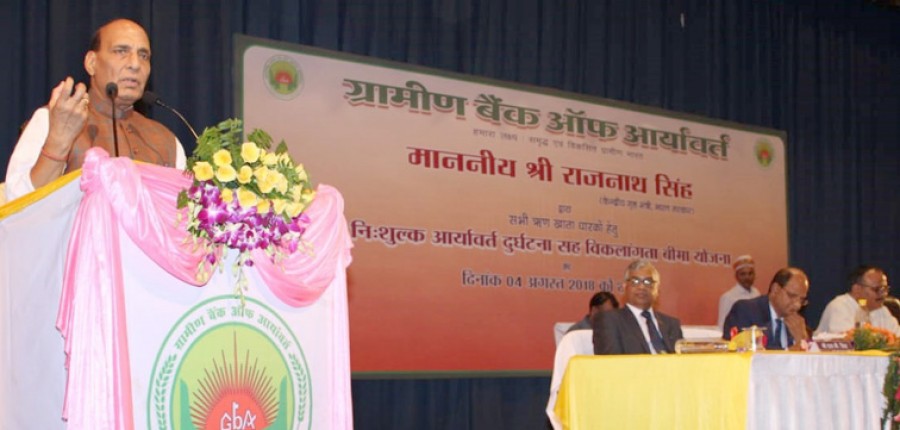 लखनऊ। केंद्रीय गृहमंत्री राजनाथ सिंह ने कहा है कि ग्रामीण बैंक देश की बैंकिंग व्यवस्था की रीढ़ हैं। लखनऊ में ग्रामीण बैंक ऑफ आर्यावर्त के सभी ऋण खाता धारकों के लिए शुरू की गई निःशुल्क आर्यावर्त दुर्घटना सह विकलांगता बीमा योजना का उद्घाटन करते हुए गृहमंत्री ने कहा कि ऐसी योजनाओं का विशेष महत्व है, इससे गांव और ग़रीब के बीच विश्वास का भाव बढ़ता है। प्रधानमंत्री नरेंद्र मोदी का उल्लेख करते हुए गृहमंत्री ने कहा कि प्रधानमंत्री ने एक बार कहा था कि क्षेत्रीय ग्रामीण बैंकों ने जनसामान्य के बीच काम करने की ज़िम्मेदारी बखूबी निभाई है। गृहमंत्री ने कहा कि सभी सरकारों ने अपनी सोच और सामर्थ के आधार पर ग्रामीण विकास के लिए काम किया है और केंद्र की एनडीए सरकार ने इन चार वर्ष में इस दिशा में महत्वपूर्ण काम किया है।