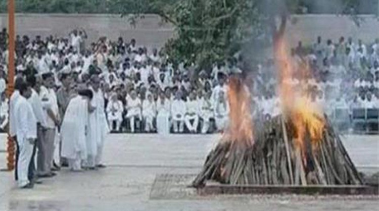 नई दिल्ली। भारतरत्न और तीन बार भारत के प्रधानमंत्री रहे एवं भारतीय जनता पार्टी के महापुरुष अटल बिहारी वाजपेयी का पार्थिव शरीर आज शाम स्मृति स्थल दिल्ली में चिता की अग्नि में विलीन हो गया। दत्तक पुत्री नमिता ने उन्हें मुखाग्नि दी। इस अवसर पर राष्ट्रपति रामनाथ कोविंद, उपराष्ट्रपति एम वेंकैया नायडू, प्रधानमंत्री नरेंद्र मोदी, गृहमंत्री राजनाथ सिंह, रक्षामंत्री निर्मला सीतारमण और उनके मंत्रिमंडलीय सहयोगी, कई देशों से आए राजनेता, राजदूत, भाजपा के राष्ट्रीय अध्यक्ष अमित शाह, संघ प्रमुख मोहन भागवत, राज्यों के मुख्यमंत्री, कांग्रेस अध्यक्ष राहुल गांधी, समाजवादी पार्टी के संरक्षक राजनेता मुलायम सिंह यादव, विभिन्न राजनीतिक दलों के नेता, भाजपा के विभिन्न प्रांतों के वरिष्ठ नेता, लाखों भाजपा कार्यकर्ता और जनसामान्य के लोग उपस्थित थे। भाजपा मुख्यालय पर मानो सारा भारत उमड़ा हुआ था। भाजपा मुख्यालय से लेकर स्मृति स्थल तक सड़क के दोनों ओर जनसामान्य की लंबी लाइन थी, जो मीडिया के सामने अटलजी के लिए अपनी भावनाएं प्रकट कर रही थीं।