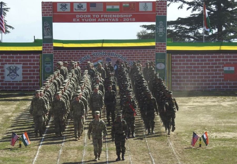 देहरादून। भारत-अमेरिका संयुक्त सैन्य युद्धाभ्यास-2018 की शुरूआत आज उत्तराखंड के चौबटिया में दोनों देशों के राष्ट्रगीतों 'जन गण मन....' एवं 'द स्टार स्पैन्गल्ड बैनर' के साथ हुई। इस अवसर पर दोनों देशों के झंडे फहराये गए और भारतीय एवं अमेरिकी सैनिकों ने एक दूसरे के साथ खड़े होकर समारोह के दौरान दोनों देशों के वरिष्ठ सैन्यधिकारियों को रस्मी सैल्यूट दिए। संयुक्त युद्धाभ्यास में अमेरिकी सेना की ओर से प्रथम इंफेंट्री बटालियन, 23 इंफेंट्री रेजिमेंट, 2 स्टइकर ब्रिगेड कॉम्बैट टीम और 7 इंफेंट्री डिविजन ने प्रतिनिधित्व किया, जबकि भारतीय सेना की ओर से कांगो ब्रिगेड, गरूड़ डिविजन और सूर्या कमान ने प्रतिनिधित्व किया। गरूड़ डिविजन के जनरल ऑफीसर कमांडिंग ने अमेरिकी सैनिकों का स्वागत किया और भारत-अमेरिका के बीच इस प्रकार की साझेदारी को दोनों देशों में प्रजातंत्र, स्वतंत्रता, समानता एवं न्याय के लिए मूल्यवान बताया।