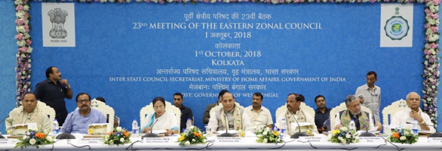 कोलकाता। केंद्रीय गृहमंत्री राजनाथ सिंह की अध्यक्षता में कोलकाता में पूर्वोत्तर आंचलिक परिषद की 23वीं बैठक हुई, जिसमें पश्चिम बंगाल, झारखंड के मुख्यमंत्री, बिहार के उपमुख्यमंत्री और ओडिशा सहित परिषद में शामिल राज्यों के मंत्री एवं केंद्र और राज्य सरकार के वरिष्ठ अधिकारी शामिल हुए। गृहमंत्री ने इस अवसर पर कहा कि केंद्र सरकार का यह प्रयास है कि आंचलिक परिषदों जैसी संस्थाओं और अंतर्राज्यीय परिषद को मजबूत बनाया जाए, ताकि राज्यों के बीच सहयोग के अच्छे माहौल को बढ़ावा दिया जा सके और उसे बरकरार रखा जा सके। उन्होंने कहा कि परिणामस्वरूप इन चार वर्ष में आंचलिक परिषद की 13 और स्थायी समिति की 15 बैठकें हो चुकी हैं, जिनमें करीब 700 मुद्दों पर विचार-विमर्श किया गया और इनमें से करीब 450 का हल निकाला गया।