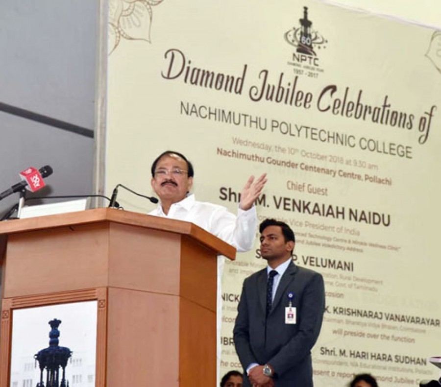चैन्नई। उपराष्‍ट्रपति एम वेंकैया नायडू ने कहा है कि कौशल विकास एक निंरतर प्रक्रिया होनी चाहिए और नई-नई खोजें लोगों का जीवन बेहतर बनाने में मददगार होनी चाहिएं। उपराष्‍ट्रपति आज तमिलनाडु के पोलाची में नचीमुत्‍थू इंडस्‍ट्रीयल एसोसिएशन के शैक्षणिक संस्‍थानों के हीरक जयंती समारोह में समापन भाषण दे रहे थे। तमिलनाडु के ग्रामीण इलाकों में रहने वाले लोगों के उत्‍थान के लिए अत्‍यधिक योगदान देने वाले संस्‍थान के संस्‍थापक अरुतचेलवर डॉ एन महालिंगम को एक आदर्श व्‍यक्ति बताते हुए उपराष्‍ट्रपति ने कहा कि इस तरह के गुणों का वर्तमान पीढ़ी के युवाओं और राजनीतिज्ञों को अनुसरण करना चाहिए। उन्‍होंने कहा कि चरित्र, क्षमता, सामर्थ्‍य और आचरण सार्वजनिक जीवन में लोगों के लिए मार्गदर्शी सिद्धांत होना चाहिए।