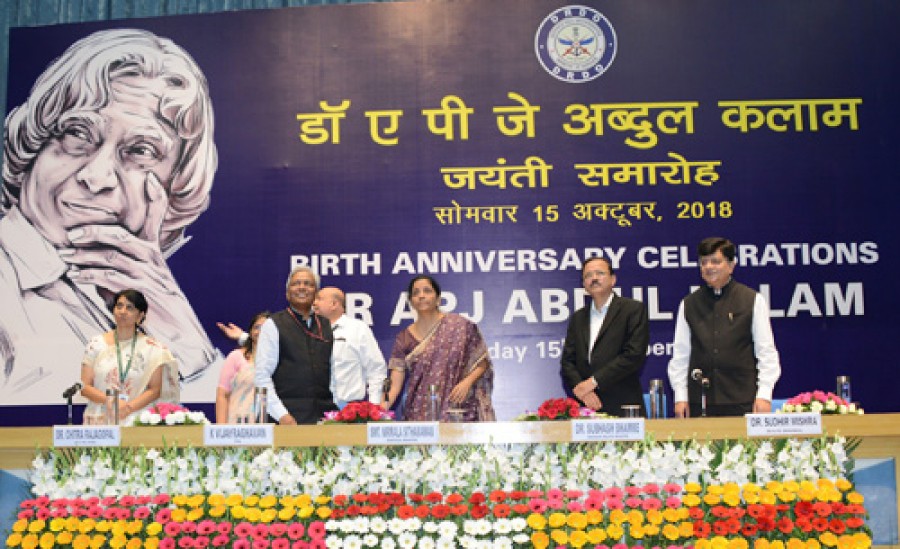 नई दिल्ली। रक्षा अनुसंधान और विकास संगठन ने नई दिल्ली के डीआरडीओ भवन में भारत के पूर्व राष्ट्रपति और डीआरडीओ के पूर्व प्रमुख भारतरत्न डॉ एपीजे अब्दुल कलाम की 87वीं जयंती मनाई। इस अवसर पर रक्षामंत्री निर्मला सीतारमण मुख्य अतिथि थीं और रक्षा राज्यमंत्री डॉ सुभाष रामराव भामरे, भारत सरकार के प्रधानमंत्री वैज्ञानिक सलाहकार प्रोफेसर के विजय राघवन और गणमान्य व्यक्ति भी उपस्थित थे। रक्षामंत्री निर्मला सीतारमण ने डॉ एपीजे अब्दुल कलाम से अपनी मुलाकात की याद साझा की। उन्होंने कहा कि डॉ एपीजे अब्दुल कलाम न केवल एक अच्छे वैज्ञानिक थे, बल्कि एक शानदार प्रशासक थे, जो अपनी टीम के सदस्यों में प्रतिभा की पहचान कर लेते थे, उन्हें आगे बढ़ाते थे और इन्हीं कारणों से ‘मिसाइल मैन’ डॉ एपीजे अब्दुल कलाम महान टीम लीडर बने।