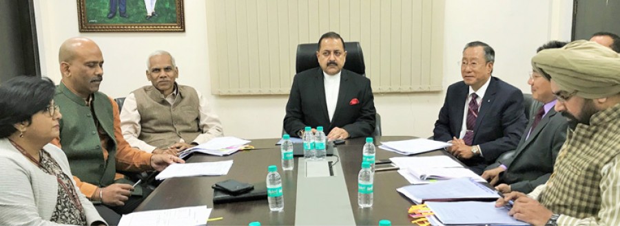 dr. jitendra singh chairing a meeting to assess the budget utilization in northeast