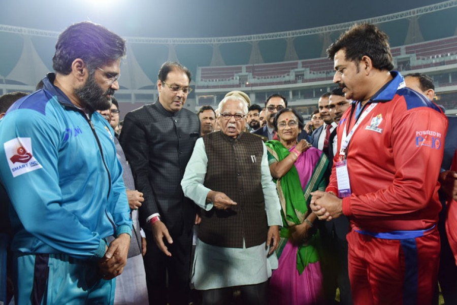 लखनऊ। राज्यपाल राम नाईक ने अटल बिहारी वाजपेयी इकाना स्टेडियम लखनऊ में भूतपूर्व सैनिकों के सहायतार्थ आयोजित बालीवुड एवं यूपी सेलिब्रिटी क्रिकेट टी-20 मैच का उद्घाटन किया। यह मैच पूर्व मुख्यमंत्री हेमवती नंदन बहुगुणा को समर्पित था। राज्यपाल ने खिलाड़ियों से परिचय प्राप्त किया और टॉस उछाल करके मैच की शुरूआत की। बालीवुड टीम में कैप्टन सुनील शेट्टी, सोनू सूद, आफताब शिवदसानी, शब्बीस आहलूवालिया तथा यूपी टीम में कैप्टन रवि किशन, मोहम्मद कैफ, पियूष चावला, दिनेश लाल निरहुआ आदि प्रमुख रूपसे थे। इस अवसर पर उत्तर प्रदेश सरकार में पर्यटन एवं महिला कल्याण मंत्री डॉ रीता बहुगुणा जोशी, चिकित्सा एवं प्राविधिक शिक्षामंत्री आशुतोष टंडन, कानून मंत्री बृजेश पाठक, राज्यमंत्री स्वाती सिंह, राज्यमंत्री मोहसिन रज़ा और विशिष्टजन उपस्थित थे।