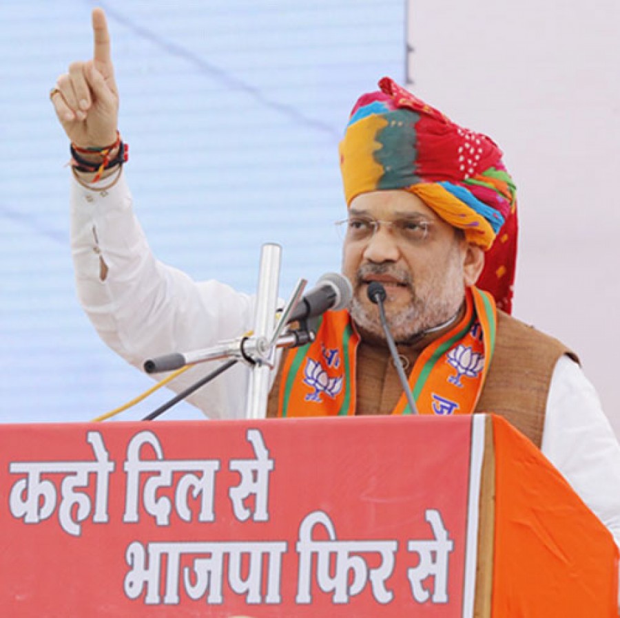 चित्तौड़गढ़। भारतीय जनता पार्टी के राष्ट्रीय अध्यक्ष अमित शाह ने आज राजस्थान के चित्तौड़गढ़, प्रतापगढ़, बूंदी और सवाई माधोपुर में विशाल जनसभाओं को संबोधित किया और राजस्थान में जातिवाद एवं नफरत का ज़हर फैलाने वाली कांग्रेस पर करारा प्रहार किया। अमित शाह ने कहा कि राजस्थान की जनता के सामने एक ओर प्रधानमंत्री नरेंद्र मोदी के नेतृत्व में देशभक्तों की टोली भारतीय जनता पार्टी है, वहीं दूसरी ओर राहुल गांधी के नेतृत्व में नफरत और जातिवाद का ज़हर फैलाने वाली कांग्रेस है, जिसके पास न नेता है, न नीति और न ही विकास करने की नीयत। उन्होंने कहा कि कांग्रेस तो ऐसी राजनीतिक पार्टी है, जो अपने कार्यकर्ताओं पर ‘भारत माता की जय' के नारे की जगह ‘सोनिया गांधी ज़िंदाबाद' का नारा लगाने के लिए मजबूर करती है, ऐसी राजनीतिक पार्टी कभी भी देश का और राजस्थान का भला नहीं कर सकती।