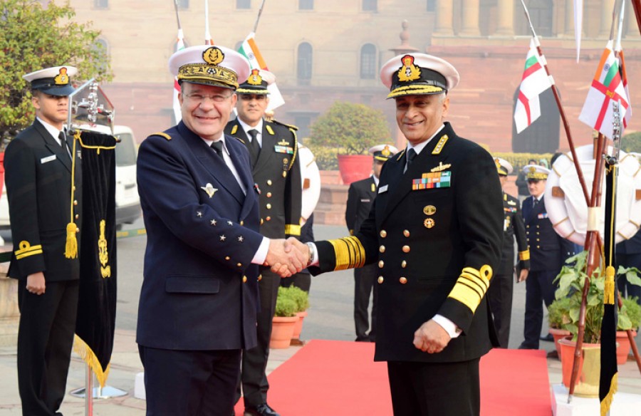 नई दिल्ली। फ्रांस के नौसेना प्रमुख एडमिरल क्रिस्टोफ प्राजुक ने आज दिल्ली में भारतीय नौसेना प्रमुख एडमिरल सुनील लांबा से मुलाकात की। एडमिरल क्रिस्टोफ प्राजुक 9 जनवरीतक भारत यात्रा पर हैं, जिसका उद्देश्य भारत और फ्रांस के बीच द्विपक्षीय नौसैनिक संबंधों को मजबूत करना, साथ ही आपसी नौसैनिक सहयोग के लिए नए रास्ते तलाशना भी है। भारतीय नौसेना प्रमुख ने एडमिरल क्रिस्टोफ प्राजुक के भारत आगमन पर उनका जोरदार स्वागत किया और भारत की तीनों सेनाओं ने उन्हें गार्ड ऑफ ऑनर दिया। फ्रांस के नौसेना प्रमुख इस दौरान भारतीय नौसेनाध्यक्ष और नौसेना के अन्य वरिष्ठ अधिकारियों के साथ द्विपक्षीय चर्चा करेंगे।