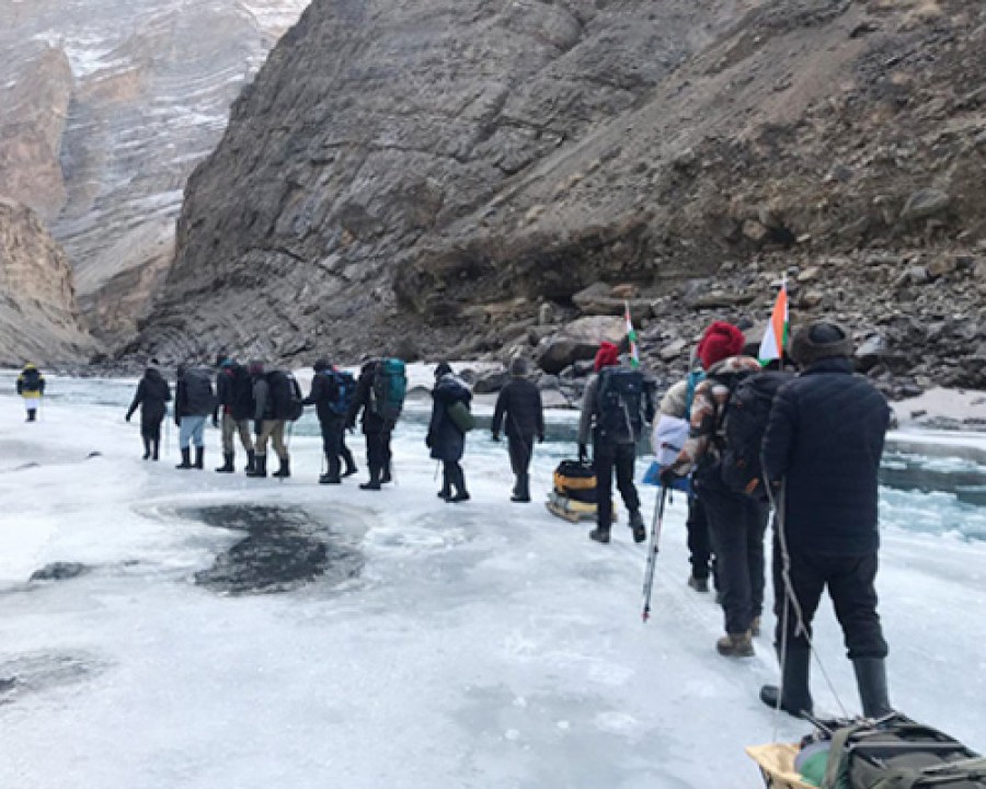 लद्दाख में जांस्कर नदी पर चुनौतीपूर्ण रास्ते को किया पार