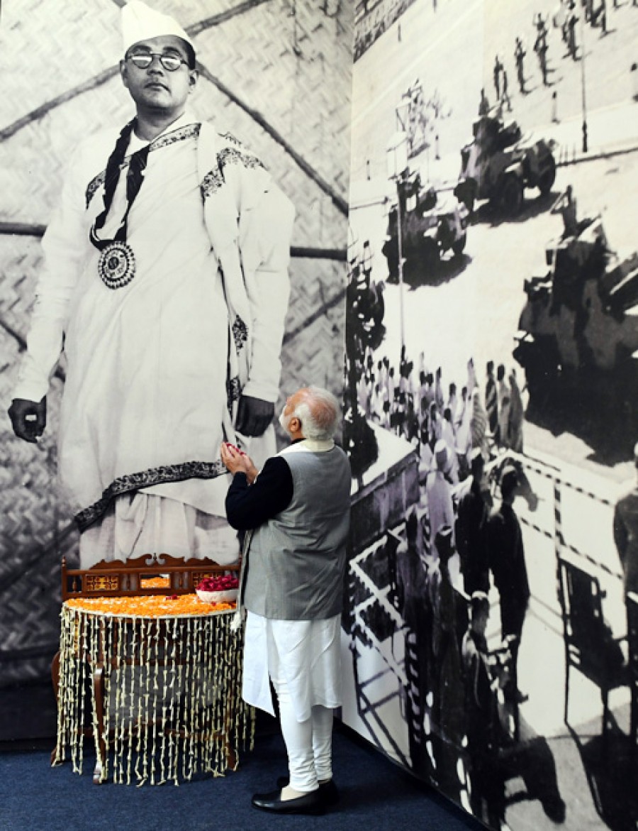 नई दिल्ली। प्रधानमंत्री नरेंद्र मोदी ने आज नेताजी सुभाष चंद्र बोस की जयंती पर उन्हें श्रद्धांजलि अर्पित की और उनकी प्रतिमा के समक्ष नतमस्तक हुए। उन्होंने कहा कि नेताजी एक महान व्यक्ति थे, जिन्होंने भारत की आज़ादी के लिए अपने को समर्पित कर दिया था। प्रधानमंत्री ने कहा कि हम लोग नेताजी के आदर्शों को पूरा करने और एक सशक्त भारत के निर्माण के लिए सतत रूपसे प्रतिबद्ध हैं। प्रधानमंत्री नरेंद्र मोदी ने इस अवसर पर दिल्ली के लाल किले में नेताजी सुभाष चंद्र बोस तथा आज़ाद हिंद फौज संग्रहालय का उद्घाटन किया, जहां सुभाष चंद्र बोस और आज़ाद हिंद फौज से संबंधित विभिन्न वस्तुएं प्रदर्शित की गई हैं, इनमें लकड़ी की कुर्सी और नेताजी की तलवार, पदक, बैच, वर्दी तथा आज़ाद हिंद फौज की सामग्री है।