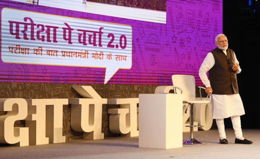नई दिल्ली। प्रधानमंत्री नरेंद्र मोदी ने आज नई दिल्ली के तालकटोरा स्टेडियम में छात्रों, अध्यापकों और अभिभावकों के साथ परीक्षा पे चर्चा के तहत दूसरी बार बातचीत की। बातचीत का दौर करीब 90 मिनट तक चला। इस बार इस कार्यक्रम में विदेशों में रहने वाले भारतीय छात्रों ने भी हिस्सा लिया, जिनमें रूस, नाईजीरिया, ईरान, नेपाल, दोहा, कुवैत, सऊदी अरब और सिंगापुर के छात्र प्रमुख रूपसे शामिल हुए। प्रधानमंत्री ने छात्रों से कहा कि वे तनाव रहित वातावरण में परीक्षा दें और बेहतर परिणाम देने के लिए किसी भी तरह के दबाव में न आएं। उन्होंने परीक्षा पे चर्चा को लघु भारत का रूप बताया और कहा कि यह भारत के भविष्य का प्रतीक है। उन्होंने इस बात पर खुशी जाहिर की कि अभिभावक और अध्यापक दोनों ही इस कार्यक्रम का हिस्सा हैं। कार्यक्रम के दौरान एक अध्यापक ने प्रधानमंत्री से प्रश्न किया कि अध्यापकों को उन अभिभावकों को क्या कहना चाहिए, जो अपने बच्चों की परीक्षाओं को लेकर तनाव में रहते हैं और बेवजह उम्मीदें लगा बैठते हैं।