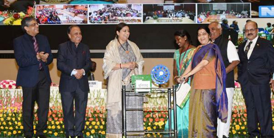 नई दिल्ली। भारत सरकार में विदेश मंत्री सुषमा स्वराज और वस्त्रमंत्री स्मृति जुबिन ईरानी ने कपड़ा मंत्रालय एवं केंद्रीय रेशम बोर्ड के दिल्ली में आयोजित समारोह में जनजातीय क्षेत्रों की महिला रीलरों को बुनियाद तसर सिल्क रीलिंग मशीनें वितरित कीं। स्मृति ईरानी ने इस अवसर पर कहा कि मशीन का वितरण जांघों पर रीलिंग की पुरानी परंपरा के उन्मूलन का हिस्सा है और तसर रेशम क्षेत्र में ग़रीब ग्रामीण और आदिवासी महिला रीलरों की सही कमाई सुनिश्चित करना इसका लक्ष्य है। उन्होंने बताया कि छत्तीसगढ़ के चंपा के एक उद्यमी के सहयोग से सेंट्रल सिल्क टेक्नोलॉजिकल रिसर्च इंस्टीट्यूट की विकसित मशीन तसर सिल्क यार्न की गुणवत्ता और उत्पादकता में सुधार करेगी और महिलाओं के कठिन श्रम को कम करेगी। उन्होंने कहा कि रीलिंग में जांघों के इस्तेमाल को समाप्त करने और मार्च 2020 तक इसे बुनियाद रीलिंग मशीन में बदलने की योजना है।