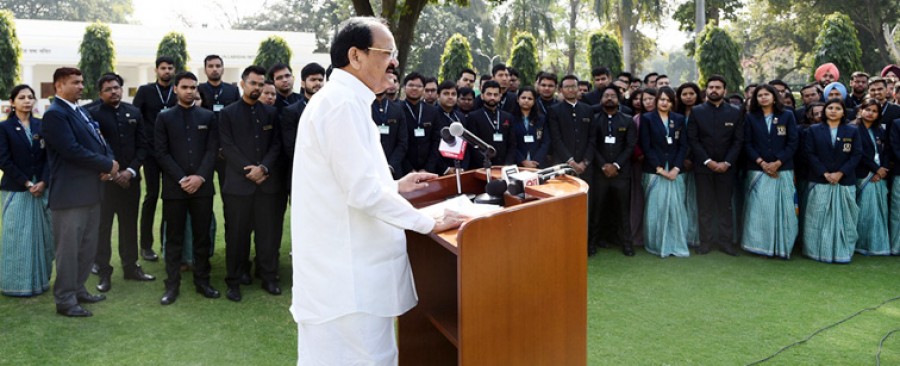 वेंकैया नायडू ने प्रशिक्षुओं से कहा कि वे देश की अर्थव्यवस्था के महत्वपूर्ण समय में अपनी सेवा की शुरुआत कर रहे हैं। उपराष्ट्रपति ने उन्हें सलाह दी कि वे भारत को व्यापार अनुकूल बनाएं और देश को उद्यमी अनुकूल कर प्रणाली और लोककेंद्रित कर प्रशासन प्रदान करें। उन्होंने कहा कि भारत दुनिया की सबसे तेज़गति से बढ़ने वाली अर्थव्यवस्था है, मंहगाई दर निम्न स्तर पर है, विकास दर अन्य अर्थव्यवस्थाओं की तुलना में तेज है, इसलिए भारत कारोबार करने के लिए सबसे अच्छी जगह है। उपराष्ट्रपति ने कहा कि भारत सरकार कर प्रशासन में डिजिटल टेक्नोलॉजी के इस्तेमाल को बढ़ावा दे रही है, इस वर्ष के अंतरिम बजट में सरकार ने एक टेक्नोलॉजी वृद्धि कर परियोजना का प्रस्ताव रखा है, ताकि आयकर विभाग को अधिक पहुंच अनुकूल बनाया जा सके, ऐसा प्रस्ताव रखा गया कि सभी रिटर्न 24 घंटे में प्रोसेस कर लिए जाएं और रिफंड साथ-साथ जारी कर दिया जाएगा।