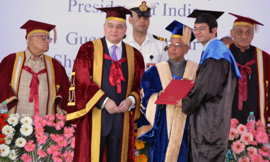 राष्ट्रपति ने भारतीय उद्योग को वैश्विक औद्योगिक विकास के मुकाबले उत्कृष्ट बनाने के लिए रणनीति बनाने पर जोर दिया। उन्होंने कहा कि इसके लिए विशेष तौर से प्रशिक्षित मानव शक्ति की आवश्यकता है, देश के व्यापार की बढ़ोत्तरी के लिए प्रशिक्षित मानव शक्ति और प्रबंधन के क्षेत्र में उत्कृष्ट श्रेणी के व्यवसायिक लोगों की आवश्यकता है, इस समय देश में विशेष तौर पर ऐसे प्रशिक्षित व्यवसायिकों की कमी है। उन्होंने उदाहरण देते हुए कहा कि प्रबंधन और वाणिज्य क्षेत्रों में पढ़ने वाले छात्रों की संख्या 2006-07 के 23 लाख की संख्या के बढ़कर 2011-12 में 34 लाख पहुंच गयी है, इन क्षेत्रों में स्नातक और स्नातकोत्तर छात्रों की भविष्य में और अधिक मांग होगी। राष्ट्रपति ने इस बात पर अफसोस किया कि विश्व के 200 उत्कृष्ट विश्वविद्यालयों में भारत का कोई भी विश्वविद्यालय अथवा संस्थान शामिल नहीं है, इसके लिए हमारे विश्वविद्यालयों को कड़ी मेहनत करने की आवश्यकता है, ताकि उन्हें भी इस सूची में स्थान मिल सके। राष्ट्रपति ने कहा कि देश में शोध को बढ़ावा देने की आवश्यकता है, इसके लिए शोध के क्षेत्र में विश्व के प्रतिष्ठित संस्थानों के साथ सम्मिलित शोध को बढ़ावा दिया जाना चाहिए, इससे देश के उद्योगों को खासा फायदा पहुंचेगा। उन्होंने आज यहां प्रथम बैच के पास आउट 37 विद्यार्थियों को डिग्रियां प्रदान कीं। इनमें से एक छात्र अंकित गर्ग को गोल्ड मैडल, पुलकित तलुजा को रजत व मयंक मिश्रा को चतुरमुखी प्रदर्शन हेतु पदक प्रदान किए गए।