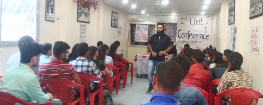 श्रीनगर (उत्तराखंड)। स्टूडेंट्स फेडरेशन ऑफ़ इंडिया की हेमवतीनंदन बहुगुणा गढ़वाल विश्वविद्यालय इकाई का सम्मलेन कोज़ी होटल श्रीनगर में हुआ। एसएफआई के अध्यक्ष अतुल कांत ने संगठन का झंडारोहण किया तत्पश्चात शहीदों के लिए दो मिनट का मौन रखकर उन्हें श्रद्धांजलि दी गई। सम्मलेनका उद्घाटन एसएफआई के राज्य अध्यक्ष नितिन मलेठा ने किया। उन्होंने चिंता प्रकट की कि आज समाज में लोगों को बांटने की राजनीति चल रही है, जिससे छात्रों को एकजुट होकर इस अराजक माहौल से लड़ना चाहिए। उन्होंने कहा कि लोगों का ध्यान धर्म, जाति से हटाकर बेरोज़गारी से निपटने और बेहतर शिक्षा की ओर केंद्रित करना चाहिए। उन्होंने कहा कि कॉलेज में बेहतर माहौल, रिक्त स्थानों पर शिक्षकों की नियुक्तियों, छात्रावास, छात्रवृति, कॉलेज की मूलभूत बुनियादी सुविधाओं के लिए हमें अपने संघर्ष को और ज्यादा तेज़ करने की जरुरत है।