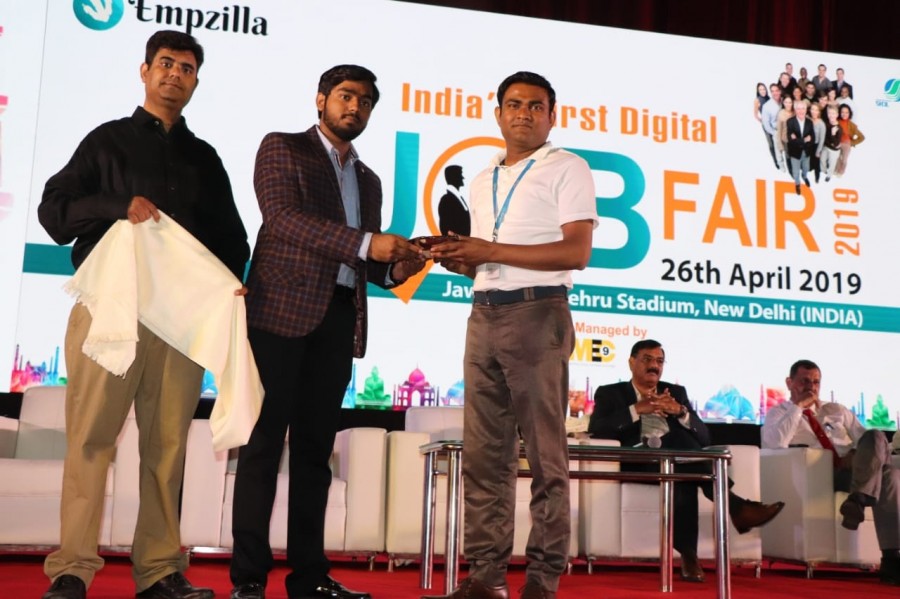 नई दिल्ली। शिक्षित बेरोज़गार युवाओं को रोज़गार देने के उद्देश्य से दिल्ली के जवाहरलाल नेहरू स्टेडियम में भारत का पहला डिजिटल जॉब फेयर आयोजित किया गया। इस जॉब फेयर का उद्घाटन साइबर लॉ एक्सपर्ट एवं सुप्रीम कोर्ट के अधिवक्ता पवन दुग्गल, स्टोक होल्डिंग कॉरपरेशन ऑफ़ इंडिया के निदेशक अमित दासी, एम्पजिला के चेयरमैन आकाश अत्रेय, डायरेक्टर दीक्षांत कुमार ने संयुक्त रूपसे दीप जलाकर किया। दावा किया गया है कि कंपनी का एकमात्र मकसद है कि भर्ती करने वाले को सही समय पर सही उम्मीदवार मिलें और नौकरी चाहने वाले को बेहतर भविष्य के लिए सही नियोक्ता मिल सके।
